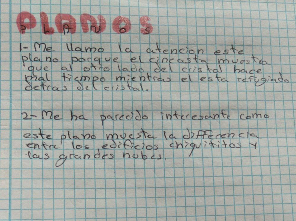 Más adelante, después de semanas, empezamos a hacer planos con movimiento como los travellings y el paneo. De vez en cuando salíamos a filmar en grupo para filmar distintos sitios que nos atraían por lo bonito que son. Y de las últimas cosas que hemos aprendido son las partes de la cámara profesional y a usarla para filmar. ¡Y todavía nos quedan muchas cosas por aprender!