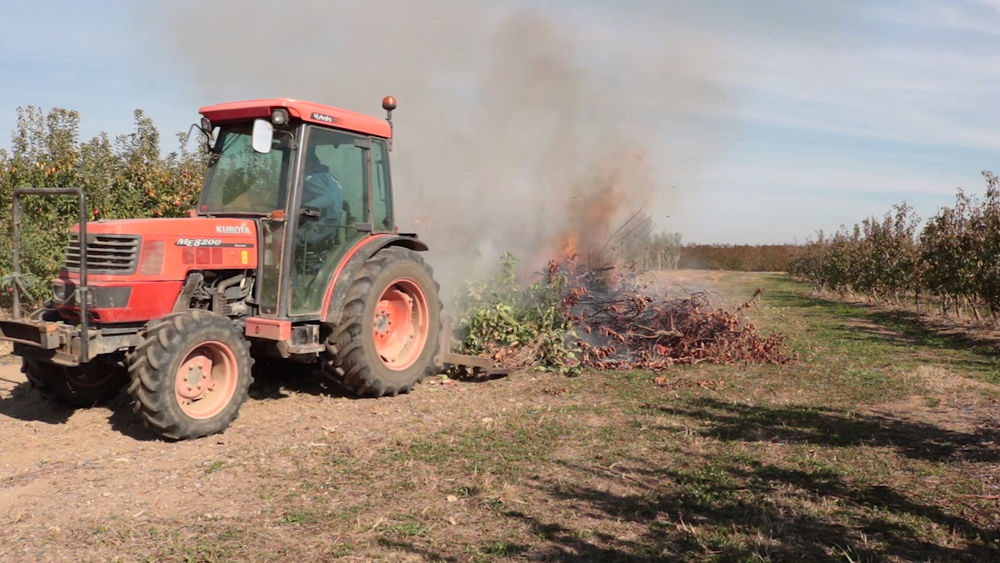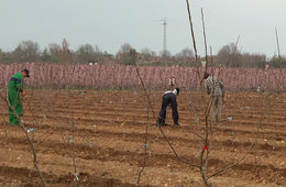 El fragment on es planten els arbres ens fa recordar a Bordils, tenim vivers, arbres fruiters i el Ban amb les fileres de Pollancres. Reconeixem moltes de les feines del camp i algunes de les màquines. Ens ha sorprès quan mullaven els arbres per que no es gelessin!