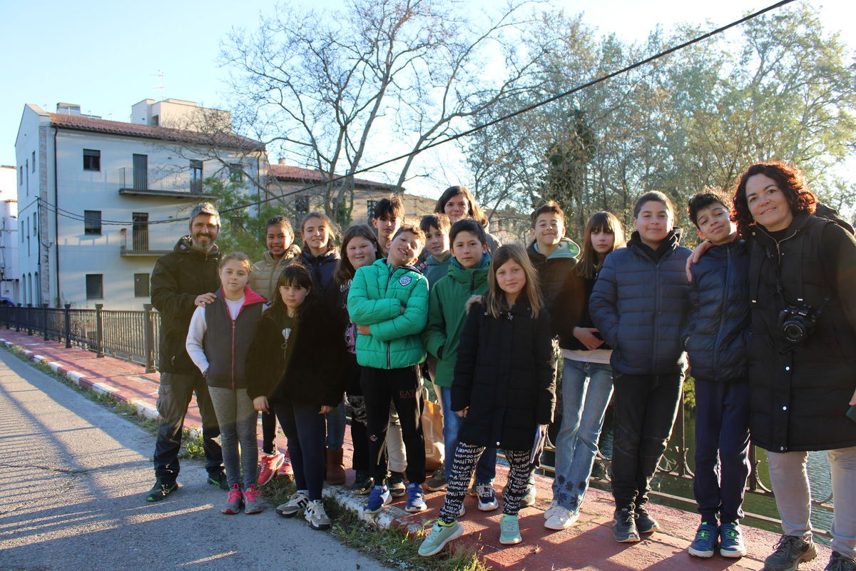 A principis de març vam anar a dibuixar noves perspectives des del Pont, inspirant-nos amb la pau que ens inspirava. Fem llistat de paraules i mirem una fotografia antiga del pont. Què ens diria el nen que hi surt? Què ens agradaria preguntar-li?