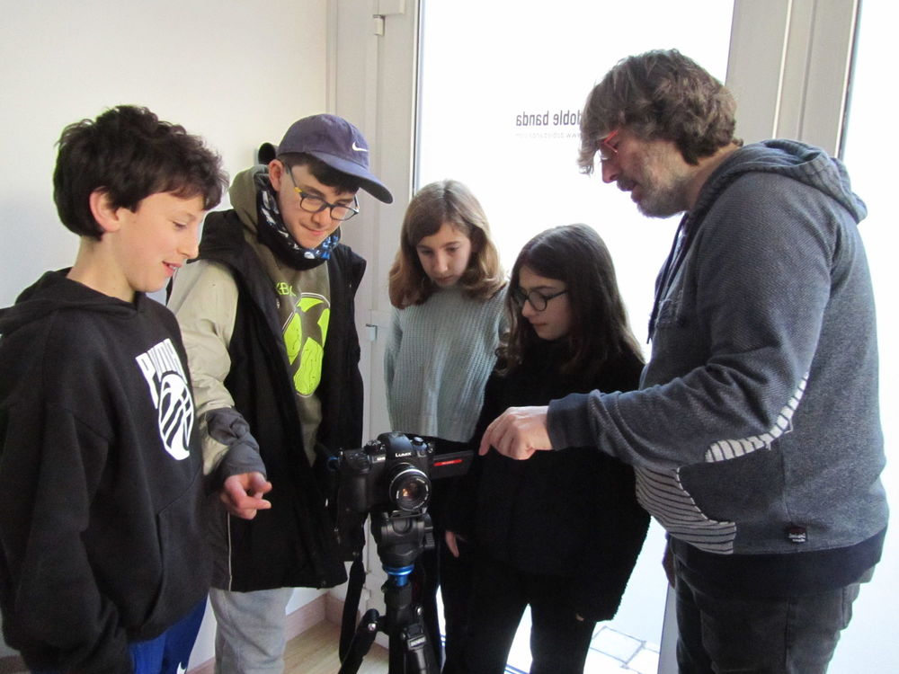Vam quedar amb ella i abans vam preparar tot el material amb el Pau. Era una oportunitat molt bona per practicar el retrat i també començar a treballar amb el material més tècnic, ja que seran els infants que, durant la filmació hauran de gestionar i organitzar-lo tot.