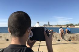 Estàvem a la platja, on havíem quedat amb el David Gutiérrez, que és el cineasta amb el que treballarem al llarg d'aquest curs. Per fer les fotografies vam utilitzar una càmera instantània Fuji.