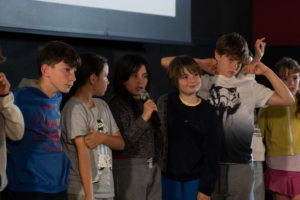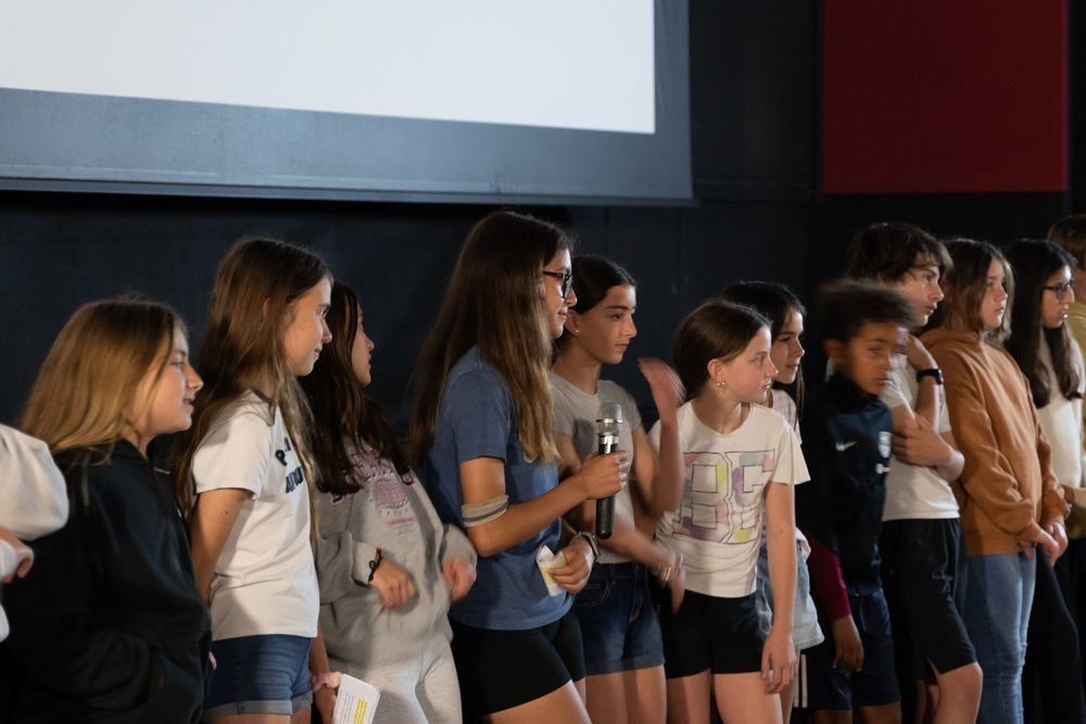 Quatre grups de les tres escoles van presentar els seus films. Després de cada presentació, es van obrir el torn de paraula en què altres centres participants i les convidades van expressar la seva felicitació, van intercanviar impressions i van fer preguntes. Aquestes converses van permetre aprofundir en la concepció del film, les tries expressives, el rodatge, el muntatge... i van sorgir emocionants comentaris sobre la importància d’haver participat i gaudit dels processos del film amb la resta de companyes.
