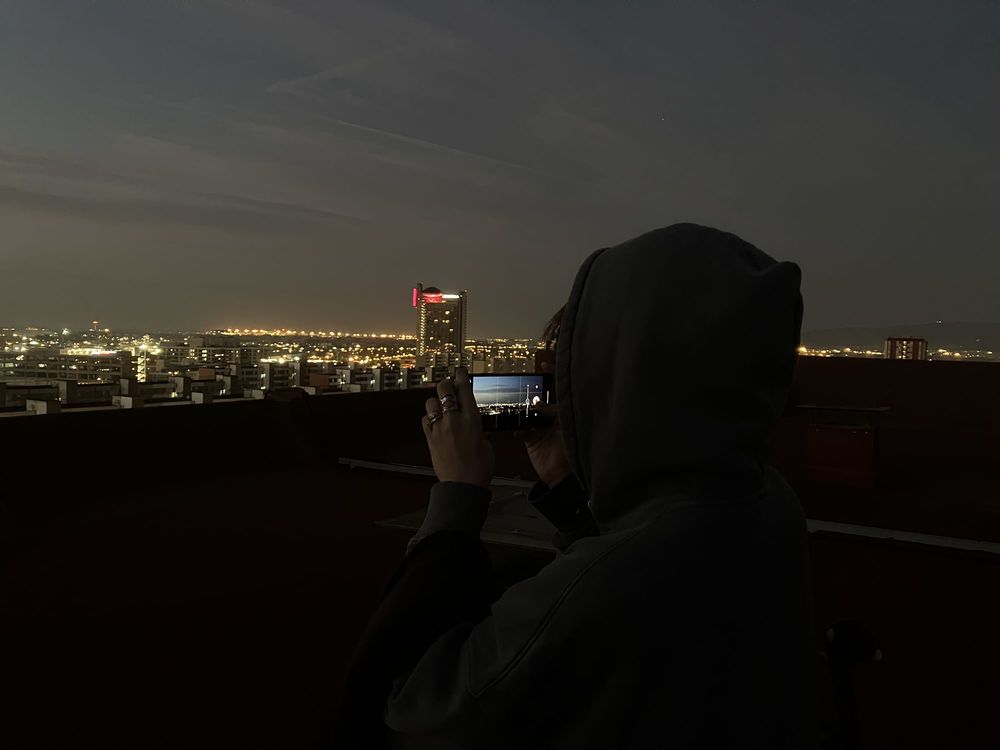 L’alba des del terrat d’un veí de Bellvitge, el Toni, ha sigut una experiència meravellosa. La sortida del sol ha estat ràpida, però única. Fa bastant de fred i una mica de vent. Se sent el soroll distant dels cotxes i un tren que passa de tant en tant. Hem filmat molts plans del món plenes d’emoció. Són uns plans molt especials.