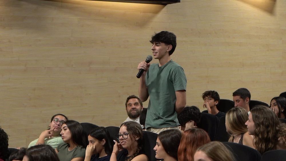 Quatre grups de quatre escoles i instituts van presentar les seves pel·lícules. Després de cada presentació, es va obrir el torn de paraula en què altres centres participants i les convidades van expressar la seva felicitació, van intercanviar impressions i van fer preguntes. Aquestes converses van permetre aprofundir en la concepció del film, les tries expressives, el rodatge, el muntatge... i van sorgir emocionants comentaris sobre la importància d’haver participat i gaudit dels processos del film amb la resta de companyes.