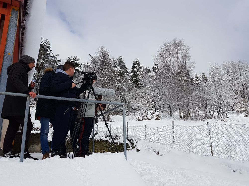 Entonces decidimos ir andando al campo de fútbol, un lugar que está a bastante altura y donde hay buenas vistas, para ello nos dividimos en grupos. Allí grabamos unos cuantos planos, hacía mal tiempo, nos llevó toda la mañana, después volvimos al colegio y volvimos con el siguiente grupo. Con ellos grabamos los alrededores del colegio y después un riachuelo que estaba cerca, cuando terminamos nos fuimos a comer y a la tarde algunos compañeros grabaron travellings en el transporte de vuelta a su casa.