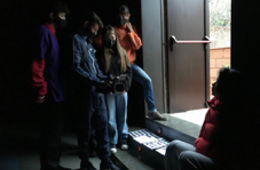 A continuació us compartim algunes fotografies de making of dels rodatges que vam realitzar a l'institut en grups petits de sis. Vam triar diferent localitzacions: algunes aules i la sala d'actes. Vam assajar diferents posicions del retratat segons la llum i com volíem enquadrar-la. Sempre aprop d'una finestra o porta i amb llum natural. També vam fer diferents preses i enquadraments fins arribar a la tria final.