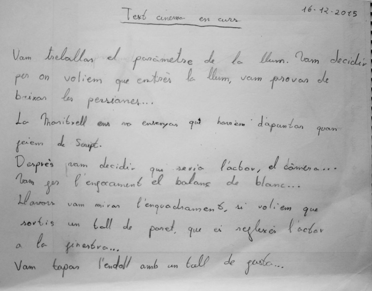 Inspirats per Philippe Garrel, Johan Van der Keuken i Nicolas Philibert, ens hem dividit en grups. Uns hem filmat a un personatge al costat de la finestra. Altres, hem treballat les òptiques. Ha estat molt interessant i emocionant!