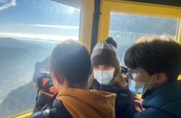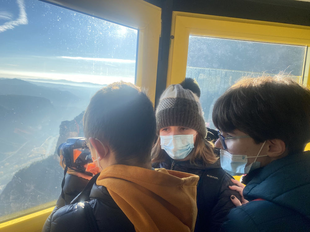 Per pujar amb l’Aeri ens vam dividir en dos grups. Un grup anava amb Mikel, el nostre cineasta, i la Sabina. El segon grup, que va pujar una mica més tard, va poder pujar a l'Aeri sense d’altres passatgers i van disposar de més espai i silenci per poder filmar.