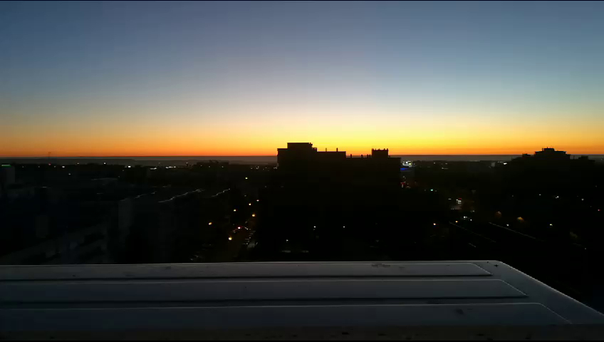 Aquest és un pla obert de l'alba on el cel crea un contrast lluminós als edificis apagats que transmeten pau i soledat. El pla pel que intueixo està fet des d'un punt alt que fa que es vegi part de la ciutat. M'ha agradat molt el pla encara que hi hagi molt moviment és molt maco i clar.