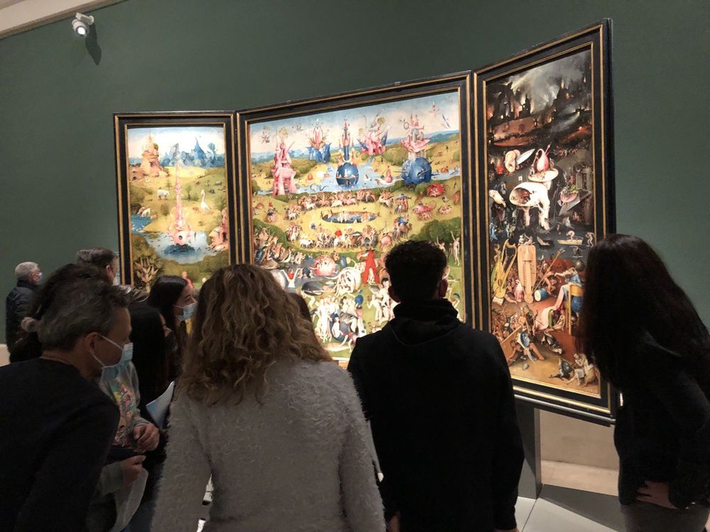 El día 20 de enero acudimos por primera vez a visitar el Museo del Prado con el proyecto de Cine en curso. Muy eufóricos a las 8:30 de la mañana nos subimos al autobús de camino a Madrid. Cuando llegamos dejamos nuestras pertenencias en la entrada y pasamos por varios detectores para comprobar que no llevábamos nada peligroso. Accedimos siguiendo las indicaciones de las educadoras del museo a una sala reducida donde nos presentamos y compartimos nuestras expectativas de la visita, allí nos explicaron también lo que haríamos durante toda la mañana para a continuación separarnos en dos grupos.