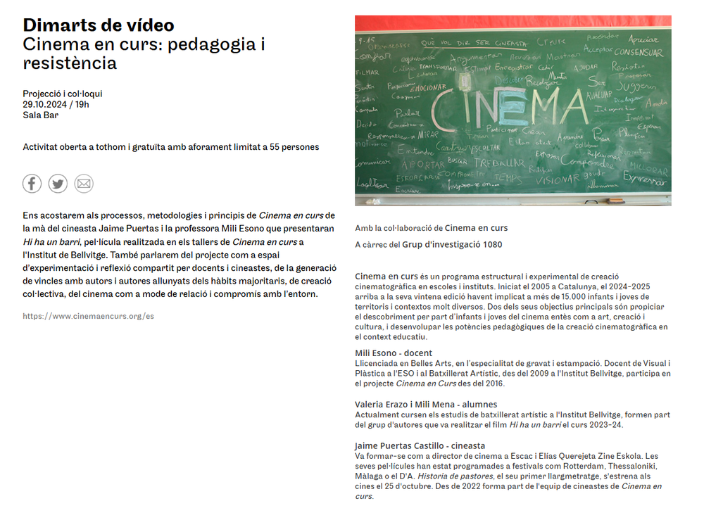Dimarts de vídeo ‘Cinema en curs: pedagogia i resistència’ al Arts Santa Mònica
