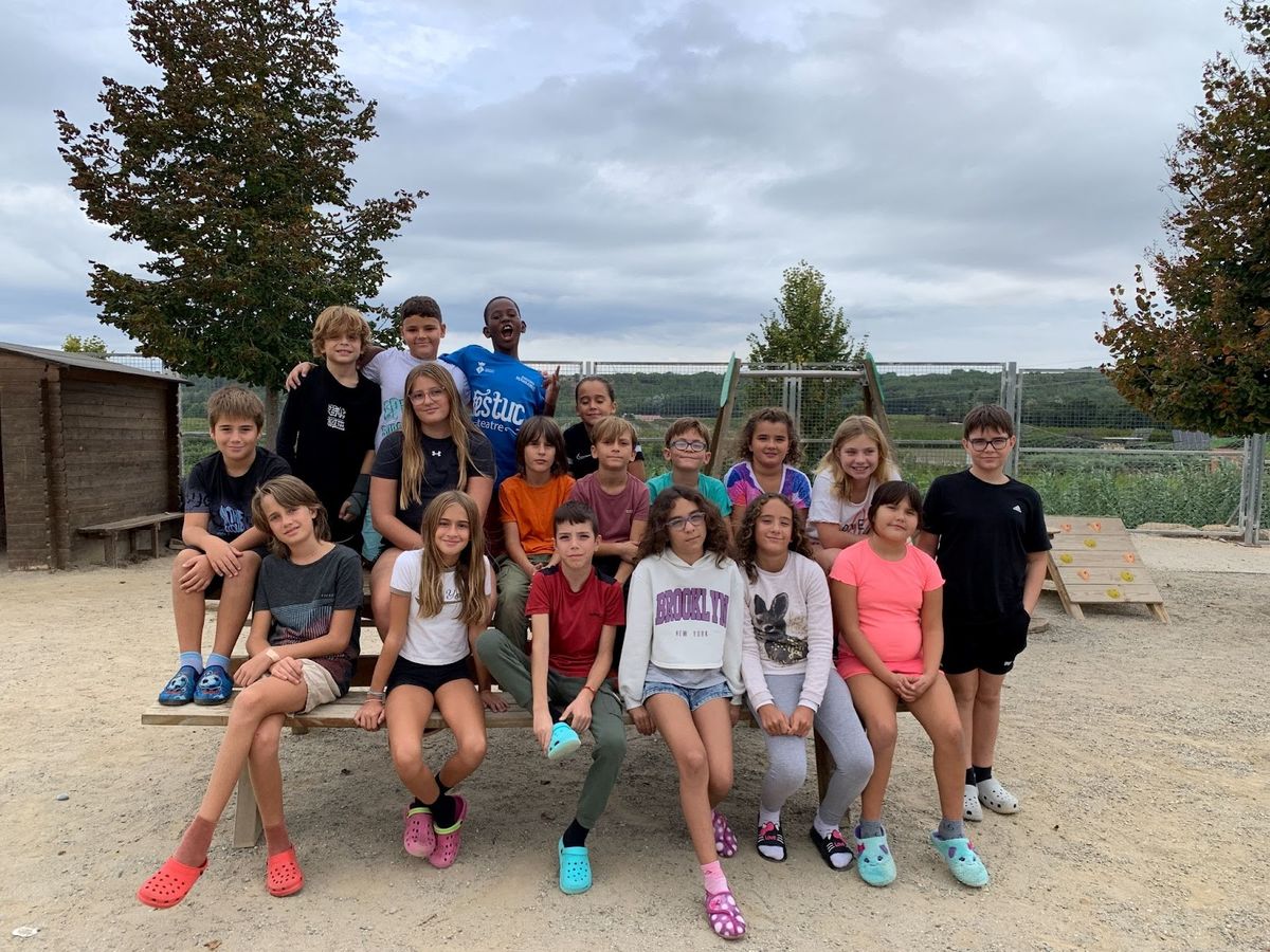 L’Aleix, el Kilian, l’Abou i el Dani són els que estan més amunt. El Josep Miquel, l’Aura, el Quim, l’Amat, el Lluc, la Queralt, l’Arlette i l’Efren, des de l’esquerra a la dreta, són els que estan al mig. Asseguts al banc, d’esquerra a dreta, hi ha l’Iru, la Martina, l’Andrei, la Clàudia, la Marta i la Sandra.