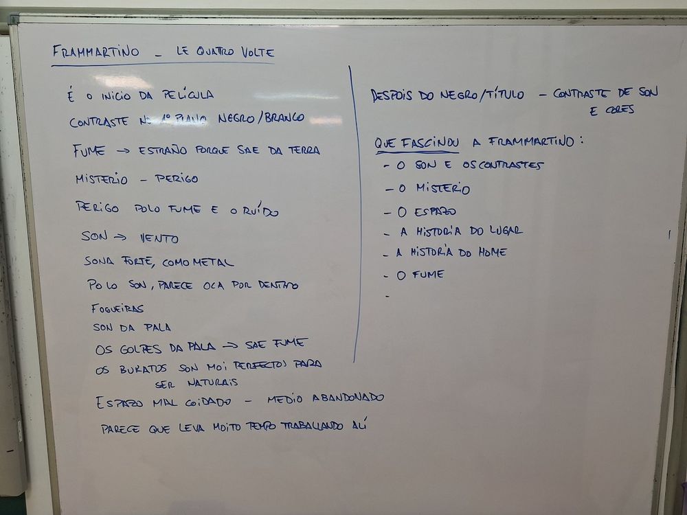 Nas últimas sesións estivemos a pensar na concepción da nosa película, repasando a documentacións e exploracións que fixemos e visionando fragmentos de Frammartino, "Le quatre volte" e de Patricio Guzmán, "Nostalgia de la luz". Encantáranos e foron moi inspiradores!
