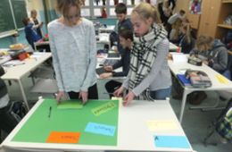 Ya sabíamos que teníamos que tomar muchas cosas en cuenta a la hora de filmar. Por ejemplo, que hay que tomar en cuenta la posición desde la que se filma. Hemos pensado entre todos si la posición en la que estábamos era adecuada. En pequeños grupos hemos empezado entonces a filmar con nuestros móviles. La trabajadora social del colegio, la señora Zaremba, y nuestra profesora de Arte, la señora Nebel, nos han ayudado