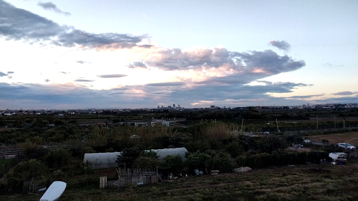 Aquell dia 9 de novembre plovia força a casa i a l'escola. Era el meu primer dia de plans del món i estava preocupada perquè estava plovent i no podríem sortir a gravar. A més, els cels serien tots tapats i els núvols no ens delectarien amb les seves formes inspiradores... Quan vaig veure aquest pla del món, em va agradar especialment per l'arc de Sant Martí. Em va fer sentir esperança per un possible canvi de temps. La llum ens il·luminen unes cases més enllà. El panorama sonor és bonic i també ple d'esperança.