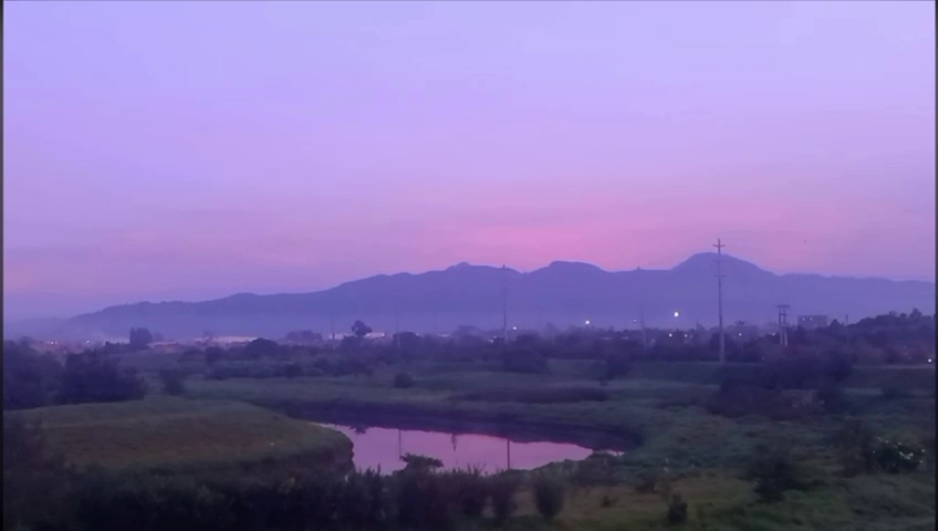 Aquest pla del món s'ha filmat a Bogotà, Colòmbia. S'ha filmat a les 5:33 del matí, però ens ha sorprès que ja s'està fent de dia. Podem veure muntanyes, un llac i uns colors roses al cel, gràcies a la sortida del sol. Ens impacta molt aquest color a aquesta hora!