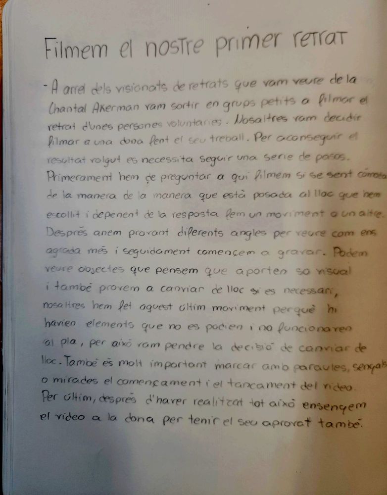 En aquestes setmanes hem estat filmant els nostres primers plans del món, aplicant el que ens van ensenyar, per exemple, que havia de ser un pla únic, obert...