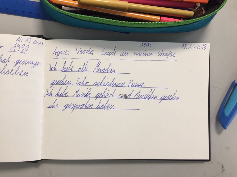 heute haben wir einen Filmausschnitt aus dem Film "Daguerrotypen" von Agnes Varta analysiert und dann von uns gefilmten Porträts angeschaut und geschnitten.