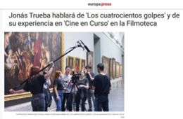 El martes 2 de diciembre, a las 20 horas, se proyecta Los cuatrocientos golpes (1959), de François Truffaut. La película será presentada por el cineasta madrileño Jonás Trueba. Tras la proyección, Trueba participará en un coloquio con Núria Aidelman, coordinadora de "Cine en curso". En el coloquio, hablará sobre la influencia del clásico de Truffaut en su trabajo como cineasta, pero también sobre cómo ha sido su experiencia con los niños y jóvenes que participan en el programa con el que colabora desde 2013.