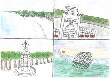 Debuxamos a nosa contorna, o mar, a praia, o faro, a fábrica de Massó, o mercado...!