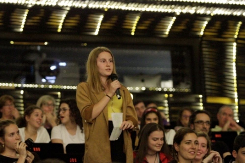 Después de cada proyección, el grupo hace una presentación y explica el proceso de creación y comenta el film con otro grupo que previamente ha visto y analizado su cortometraje.