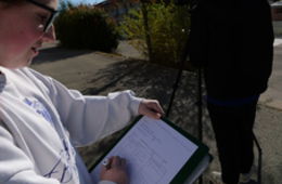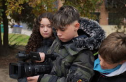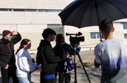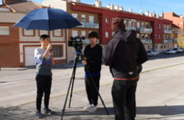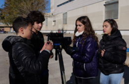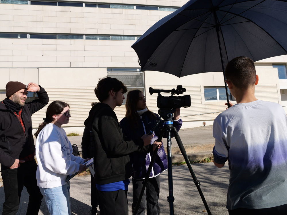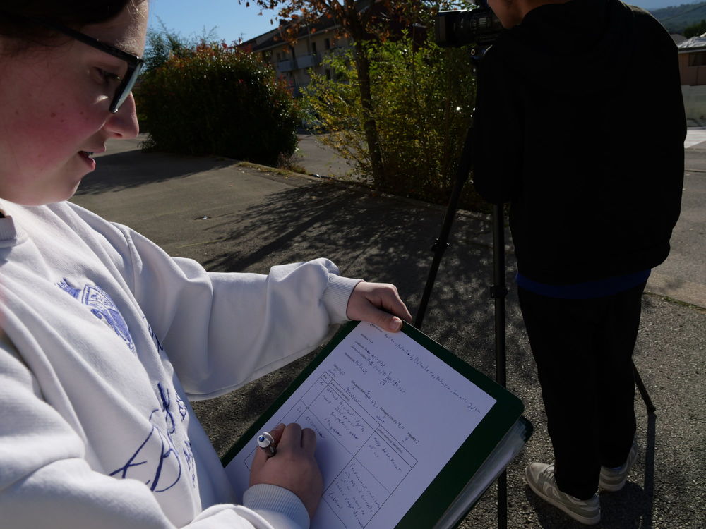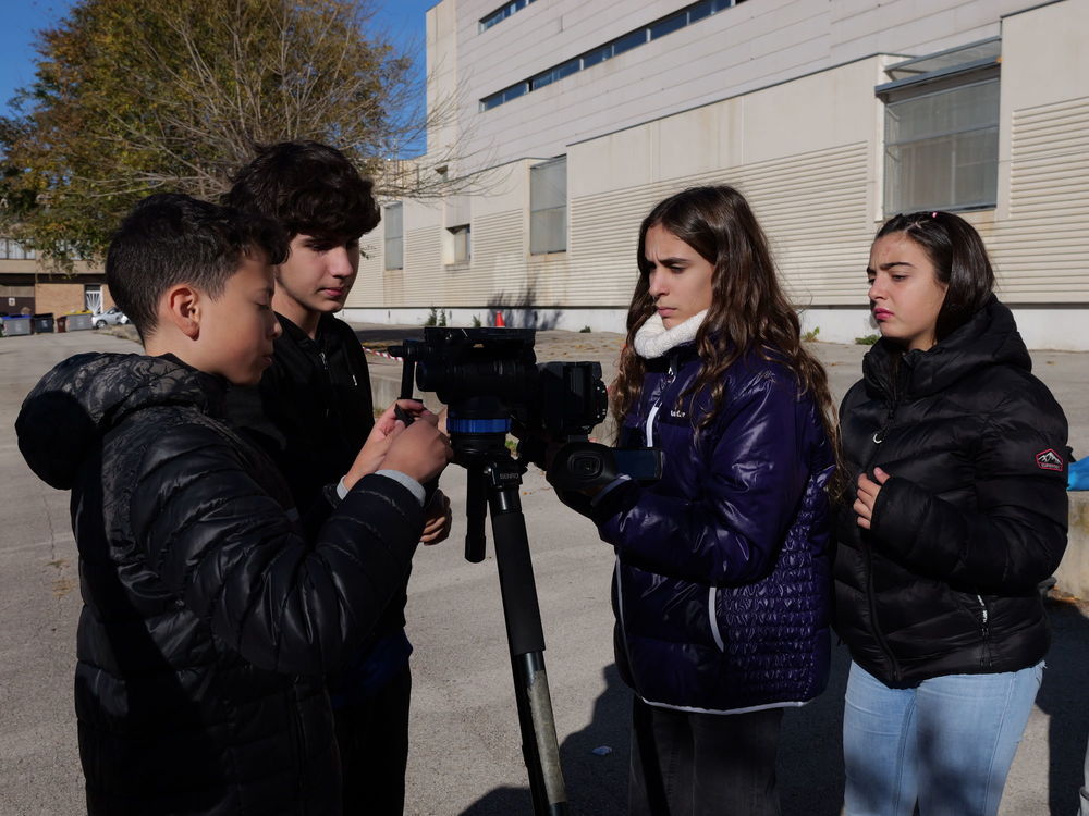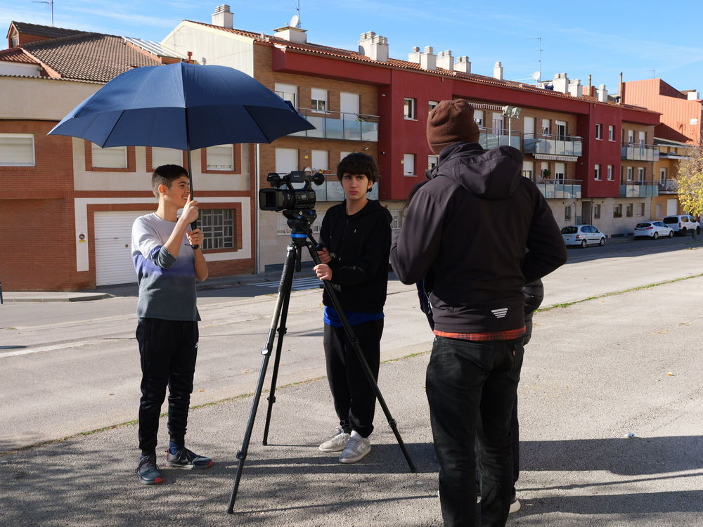 Després de veure i comentar el fragment vam sortir a filmar-lo, davant de l’institut Castellet.