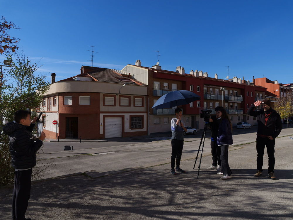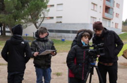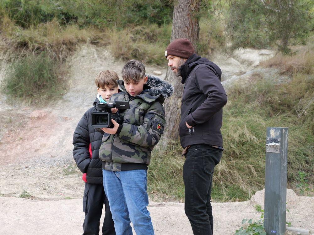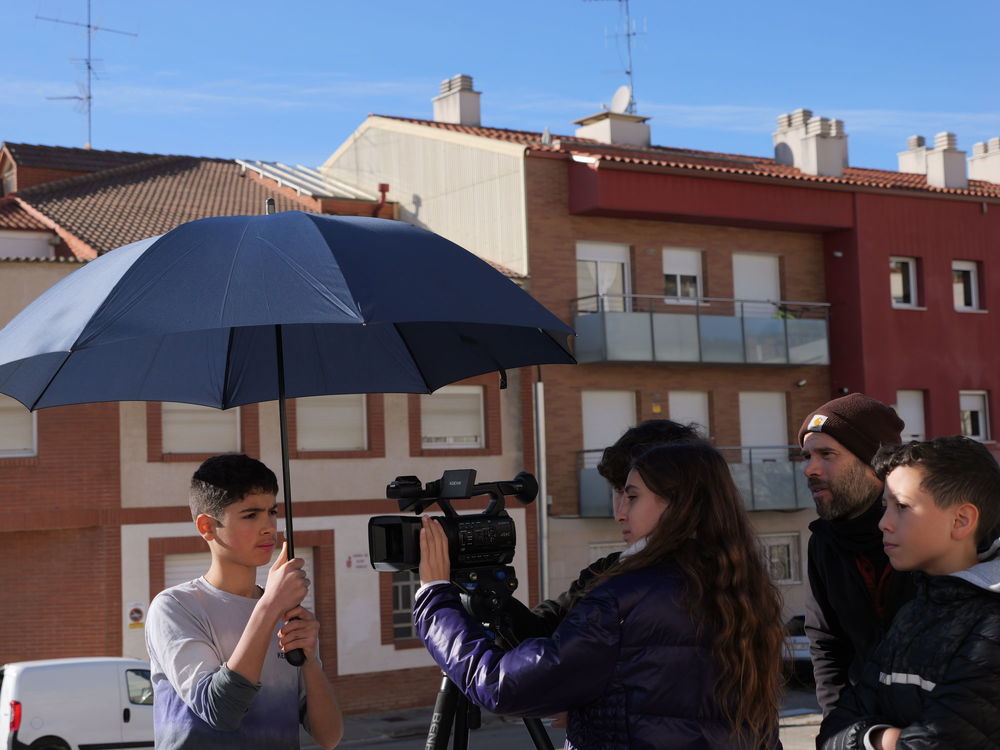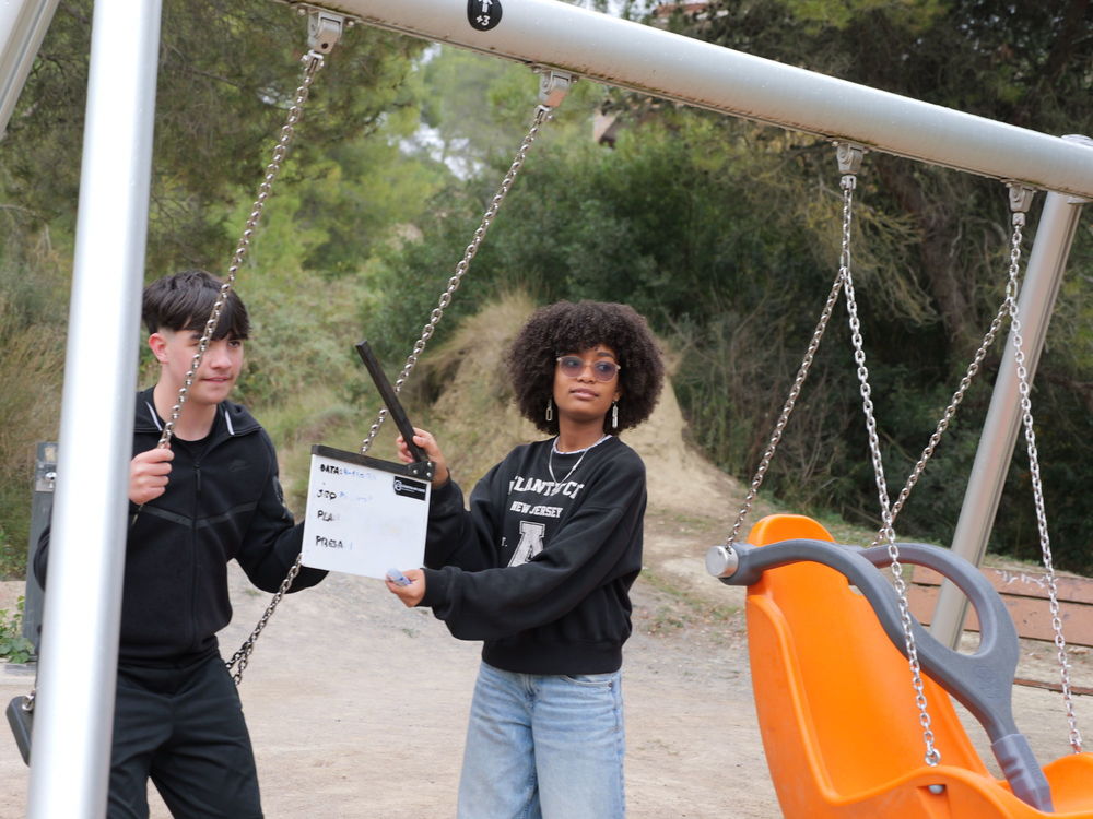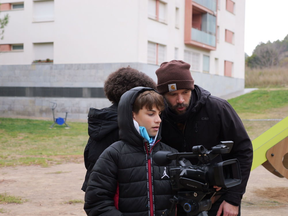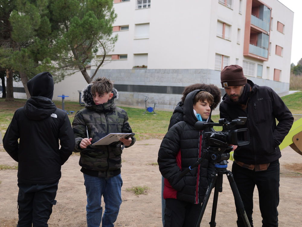 La segona i la tercera van ser molt bones, però vam optar per muntar la 3ra perquè tenía un millor enfocament i moviment de l’actriu. Aquesta va ser la única presa que vam fer claqueta. A la càmera hi era el Iuri, el Zakaria era l’ajudant de càmera, la Mariona era la directora, la co-directora era la Paula, l’script la Júlia (que apuntaba la óptica, etc…), la actriu la Leire, i el Samuel ajudava amb cosas fora del pla, com per exemple fer ombra amb un paraigua per que poguéssim veure la pantalla de la càmera.