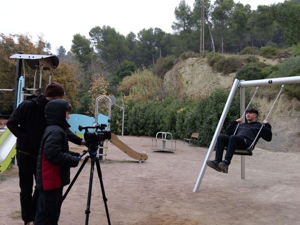 Vam anar a filmar al gronxador que hi ha al parc infantil de la Bòbilia. Hi vam filmar tres plans. En el primer pla que vam filmar per aconseguir la poca profunditat de camp ens vam allunyar molt del groxador i vam tancar l’òptica, també vam ficar un filtre per poder tenir l’iris més obert. Van fer l’enfocament en el punt que l’actor estava més a prop de la cámera.