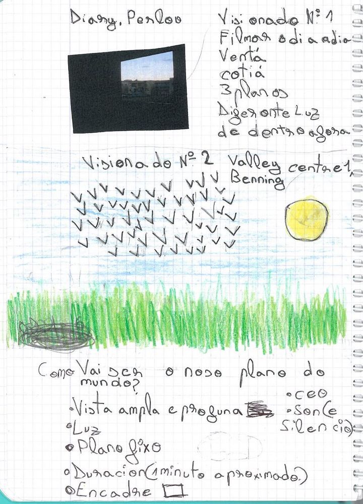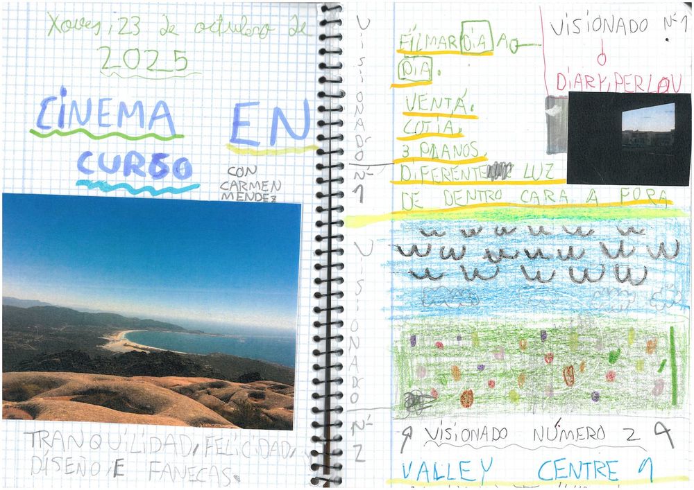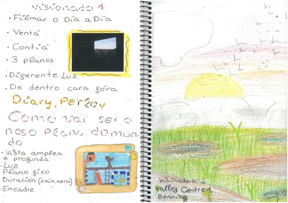 Boas! Na nosa primeira sesión de Cinema en curso coa cineasta Carmen visionamos un fragmento de "Diary 1973-1983" de Perlov e de "El Valley Centro" de Benning. Estes primeiros visionados inspiráronnos para comezar a filmar e para debuxar e escribir nos nosos cadernos!