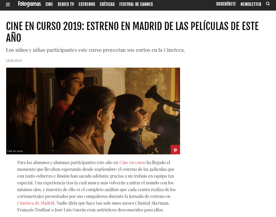 'Cine en curso' ha tenido mucha repercusión en prensa, festivales, jornadas, publicaciones…
