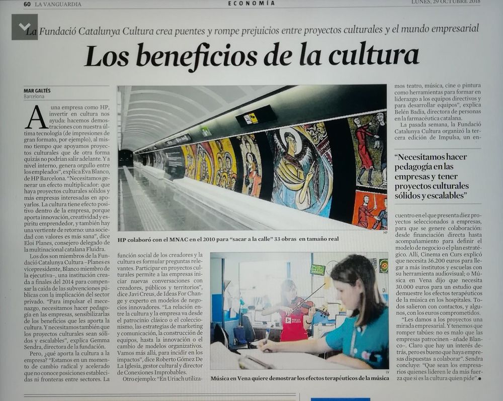 Article sobre la relació entre el món empresarial i els projectes culturals en el qual apareix la participació de Cinema en curs en la tercera edició d’Impulsa.