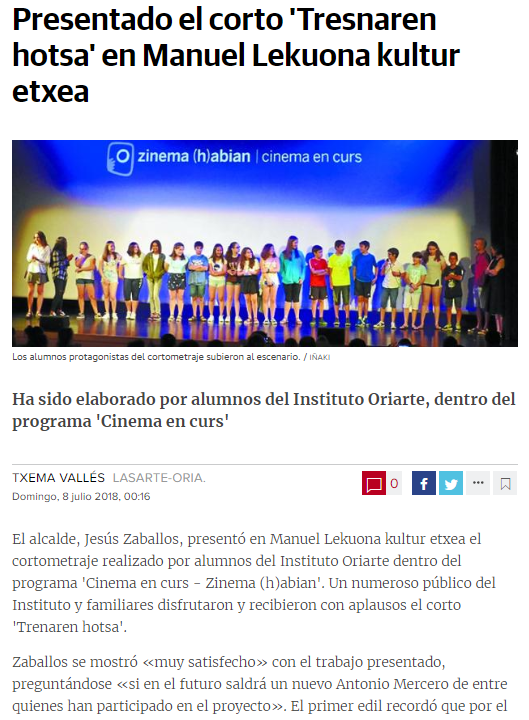 Diumenge 22 de juliol s’emetrà al programa Curts de Betevé els films Començar de nou, realitzat pels alumnes de l'Institut MontjuïC i Trenaren hotsa, dels alumnes de l'Oriarte Institutua.