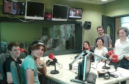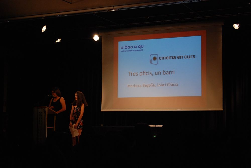 Els alumnes de 1r d'ESO de l'Institut Maria Espinalt presenten el seu film documental Memòries d'un barri a la Biblioteca Poblenou, antiga fàbrica tèxtil de Can Saladrigas.