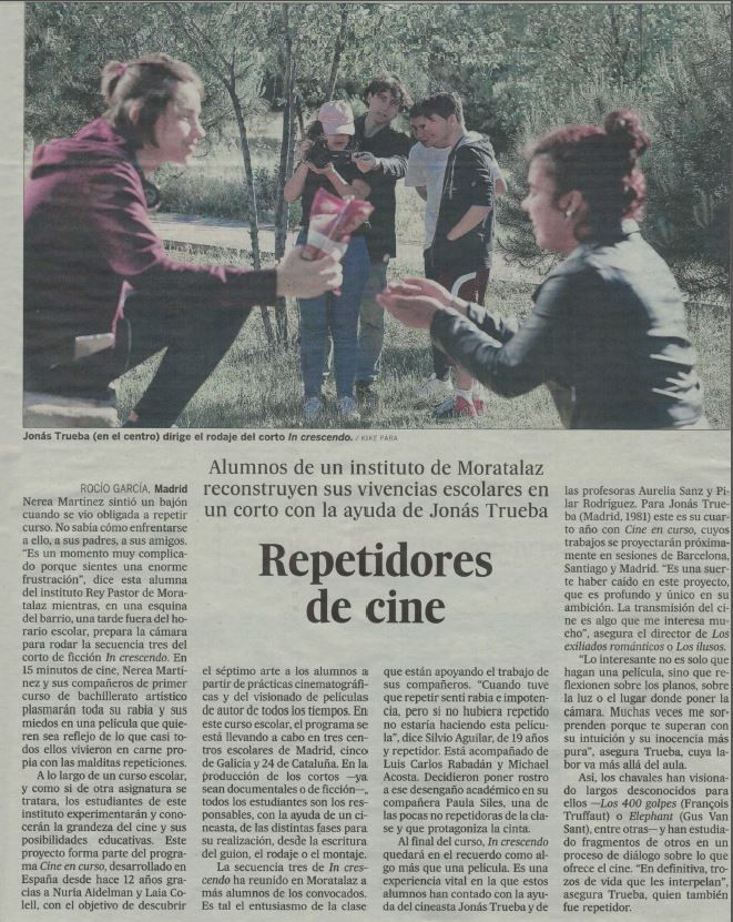 Estreno en la Cineteca de Madrid de seis películas realizadas en Cine en curso Madrid y Cataluña: Diario de una mirada(CEIP Ntra. Sra. de la Fuencisla), Al oeste de Fuenlabrada (IES Jimena Menéndez Pidal), In crescendo (IES Rey Pastor), Xerallo. L'oblit entre les muntanyes (Institut de Tremp), Memòries d'un barri (Institut Maria Espinalt) y La distància (Institut Moisès Broggi).