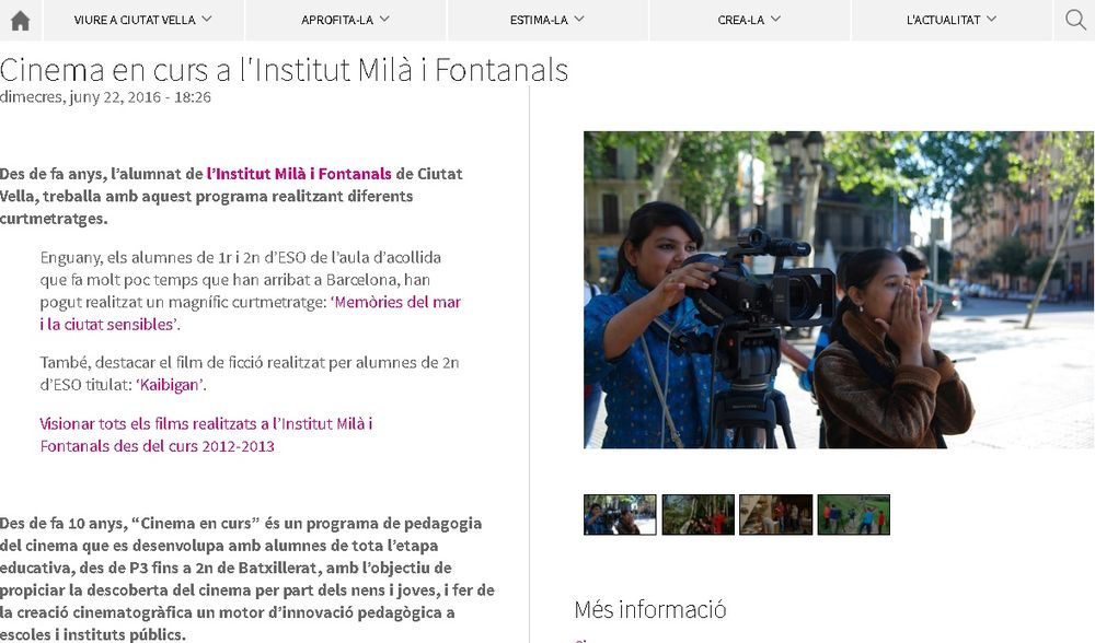 El dissabte 9 de juliol s'emeten els films documentals Memòries d'una fàbrica i Històries de Poblenou, realitzats pels alumnes de l'Institut Quatre Cantons al Doc's de BTV a les 19:25h.