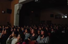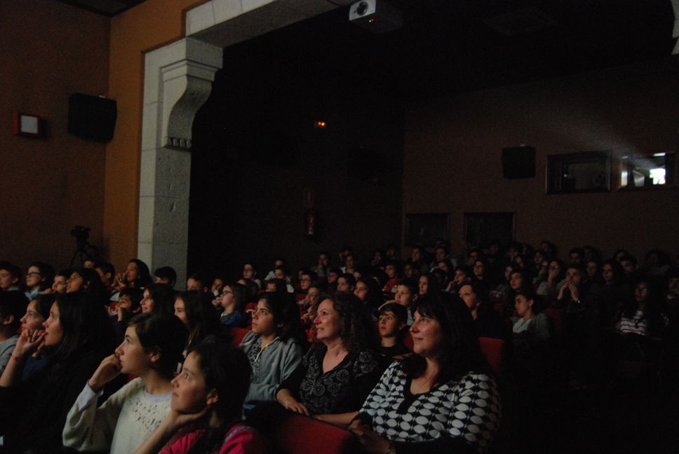 Los alumnos de 4º de ESO del Instituto Jimena Menéndez Pidal presentan su película Nuevos pasos en el teatro del Centro Cívico Vivero Hospital Universidad de Fuenlabrada.