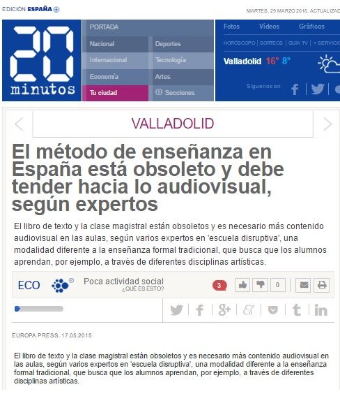 En el marc de les jornades ‘#EED2015: Escuela de Educación Disruptiva 2015’ organitzades per la Fundación Telefónica, Núria Aidelman i Laia Colell participen de les converses ‘Del libro de texto a Youtube: el lenguaje audiovisual como herramienta de trabajo en el aula’. Les co-directores de Cinema en curs parlen en la seva ponència del 'Cinema com art i creació'.
