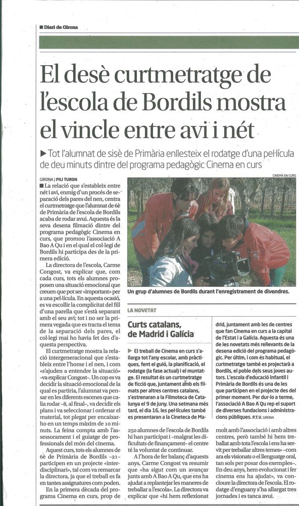 En el marc de la XII edició del festival, projecció dels films En veu baixa (Institut Joan d’Àustria) i La solitud (Institut Milà i Fontanals) realitzats a Cinema en curs 2013-2014. Els films reben la menció especial del Jurat.