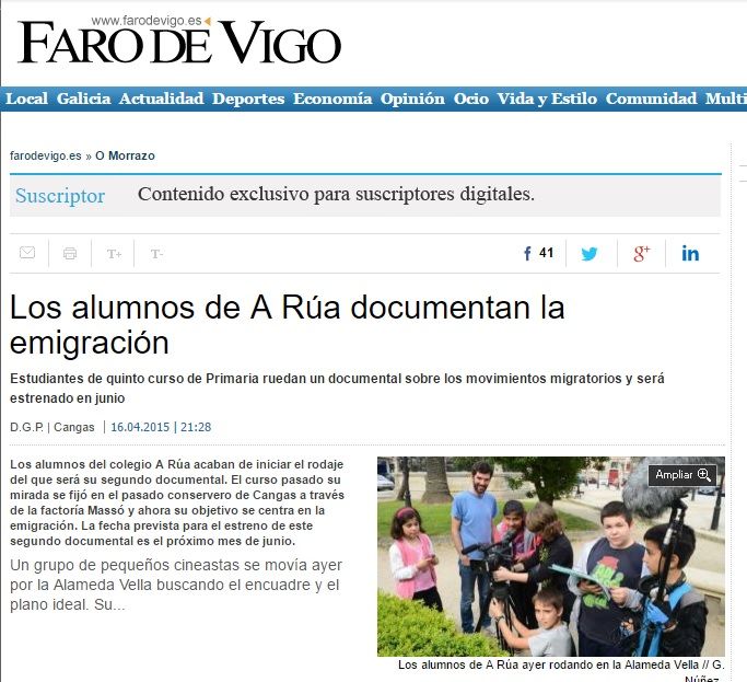 En el marc de la II edició del festival, projecció dels films Massó no recordo (CEIP A Rúa, Cangas) i Traços (Escola Els Xiprers, Barcelona) a Cinema en curs 2013-2014.
