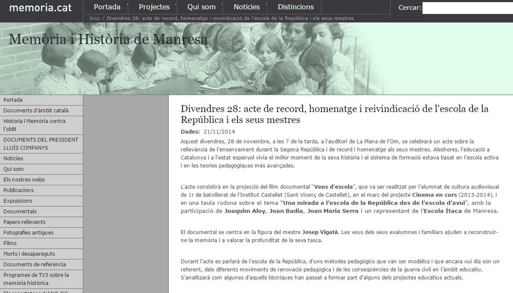En el marc de la VII edició del festival, es projecten dos films realitzats a Cinema en curs 2013-2014.