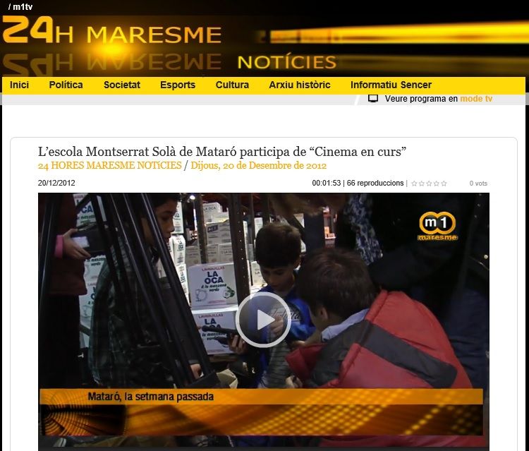 Projecció, també, dels films finals realitzats a Cinema en curs 2011-2012 a la Sala 6 x 2 de la Cinemateca Júnior el 23 de febrer.