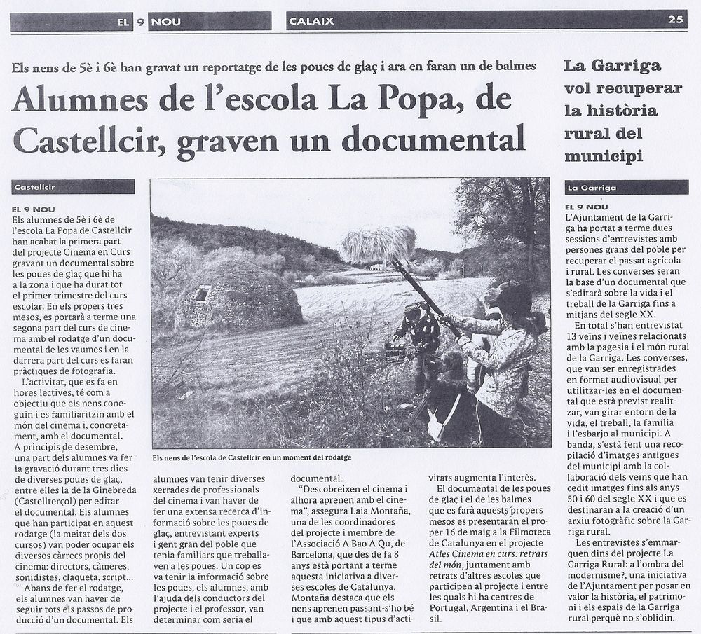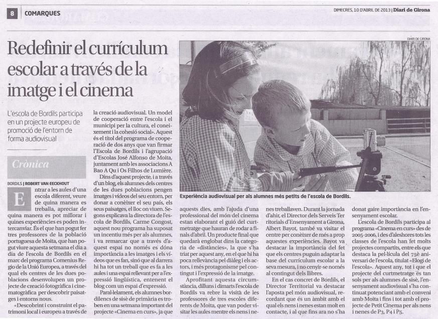 El dia 8 d’abril es projecten Ciutat estranya, realitzat pels alumnes de l’institut Júlia Minguell el curs 2011-2012 i Camins, silencis i somriures, realitzat pels alumnes de l’Escola de Bordils el curs 2009-2010.