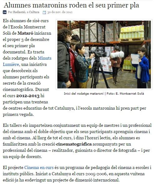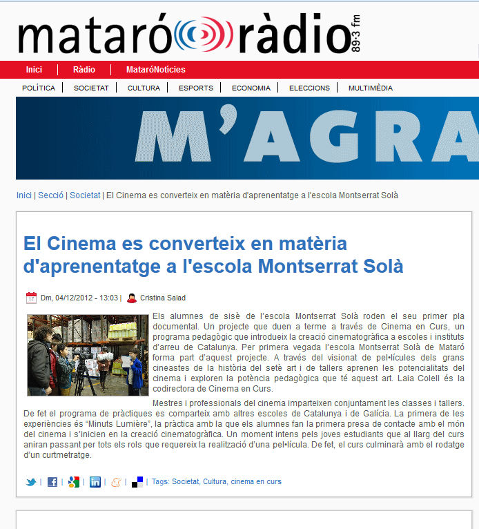 En el marc de l'assignatura 'Llenguatge audiovisual i expressió artística’ de 4t curs de la Facultat de Ciències de l’Educació de la Universitat Autònoma de Barcelona, Laia Colell presenta Cinema en curs.