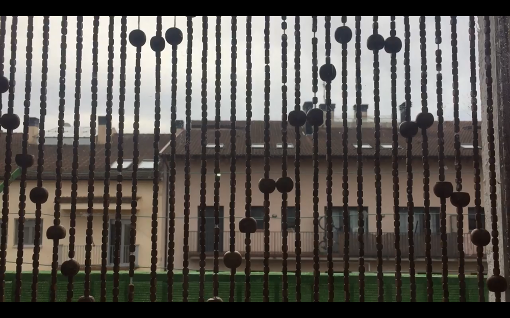 M’ha cridat l'atenció el vídeo per la composició tan diferent a tots els altres videos. Per mi es una composició a asimètrica clarament per les cases del fons i per les boletes de la cortina.