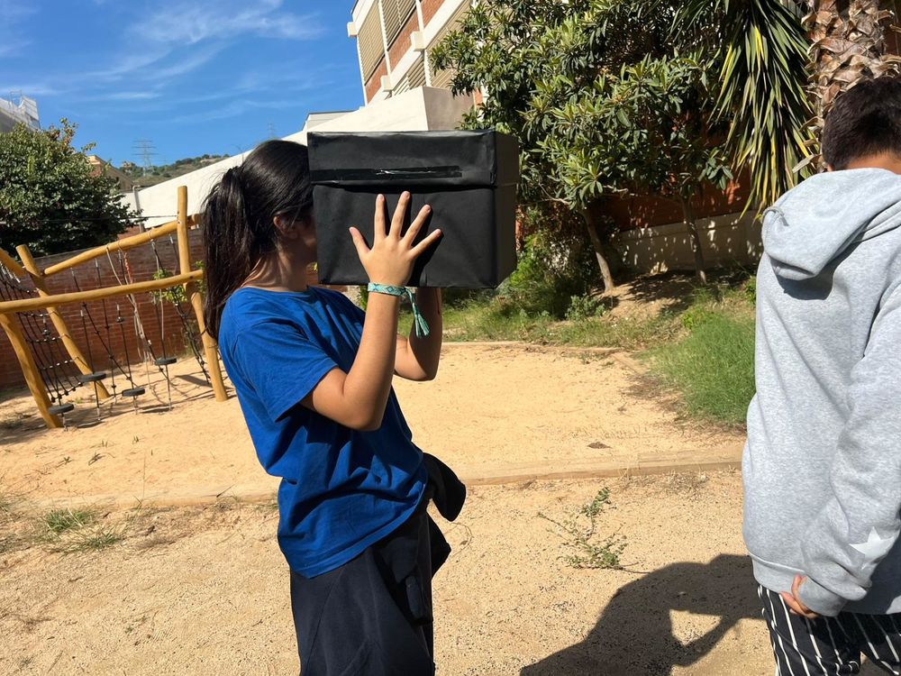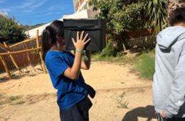 Quan ja la teníem construïda hem anat a l'hort de l’institut per provar-la. Ha estat un moment molt emocionant, ja que quan hem mirat pel forat gran hem pogut veure tot del revés!