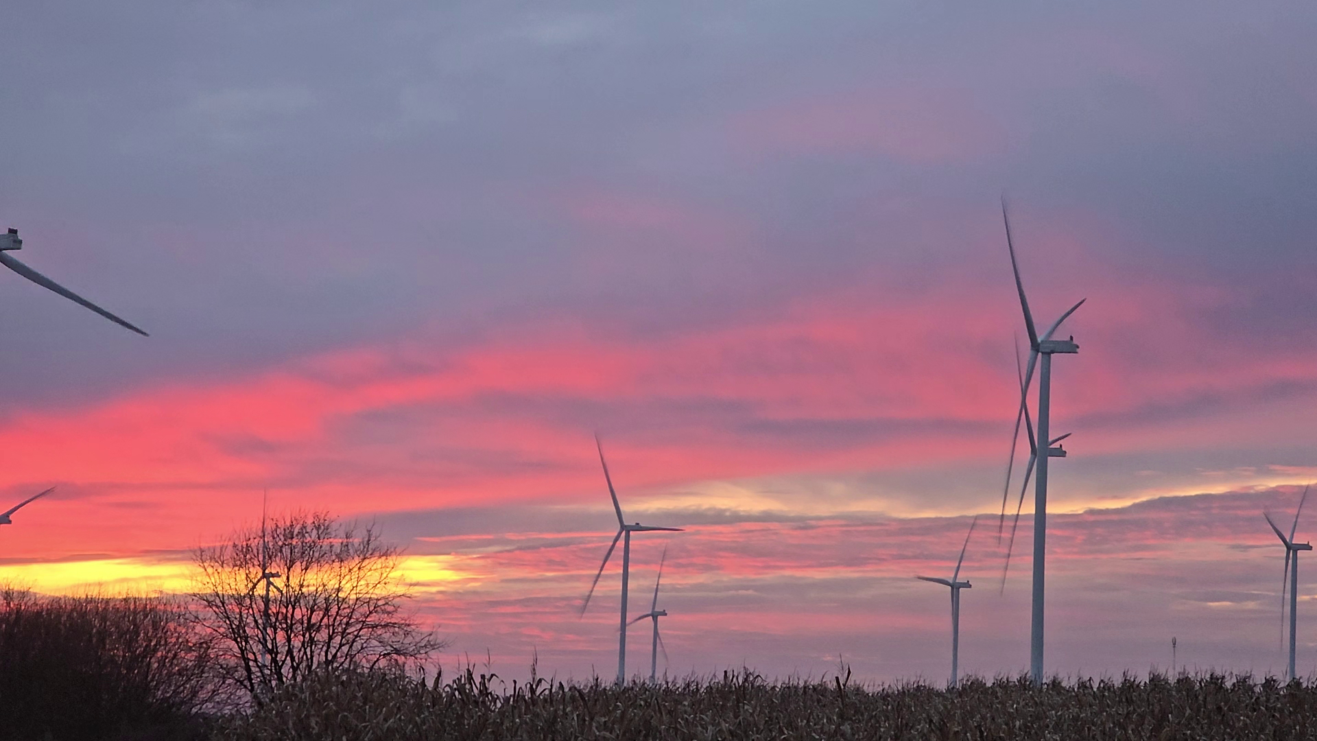 Aquest pla està fet a l’exterior, a Lituània, en un camp amb molins eòlics, és un paisatge amb contrast entre lo natural i lo artificial, és un pla bastant obert i gairebé tots els elements estan en primer pla. Al cel es veu la posta de sol amb diferents colors càlids, aquest cel és el que més destaca, ja que ocupa la major part de l'enquadrament. També són molt significatius els molins, ja que són molt grans i el seu color blanc contrasta amb el cel, a més a més el moviment no és exagerat i et dona la sensació de tranquil·litat. El so és molt representatiu de la imatge, ja que s’escolta el molí i el vent. Quan el miro em transmet molta llibertat i calma, m’imagino un lloc allunyat de totes les civilitzacions, un lloc tranquil.