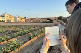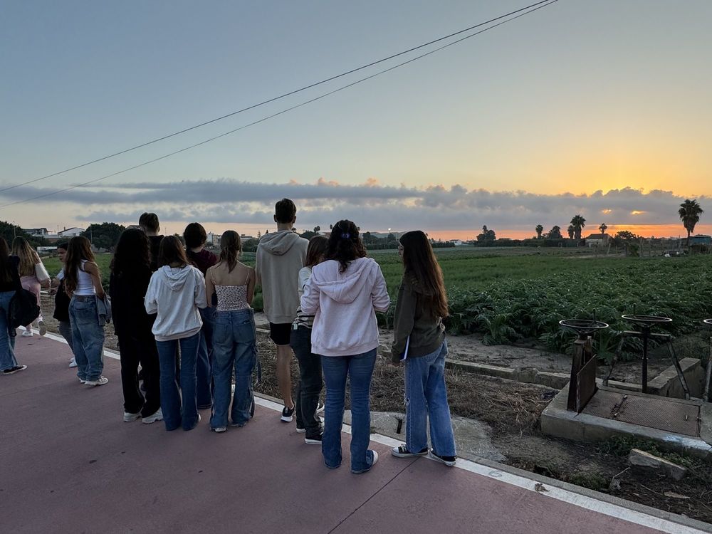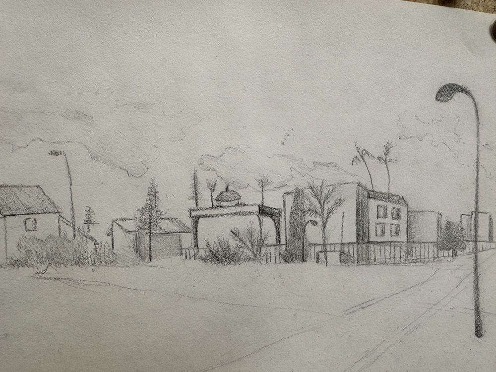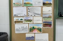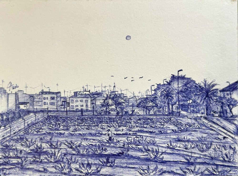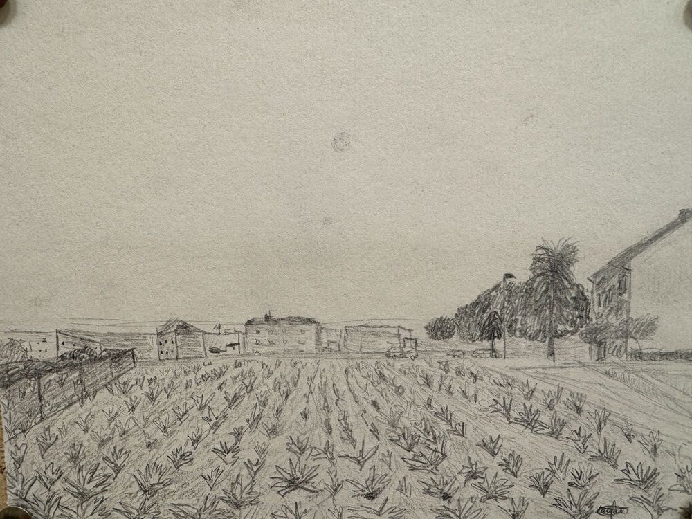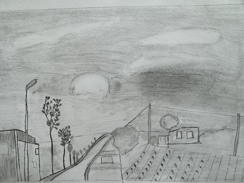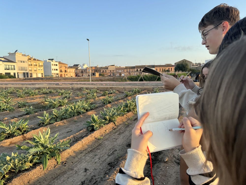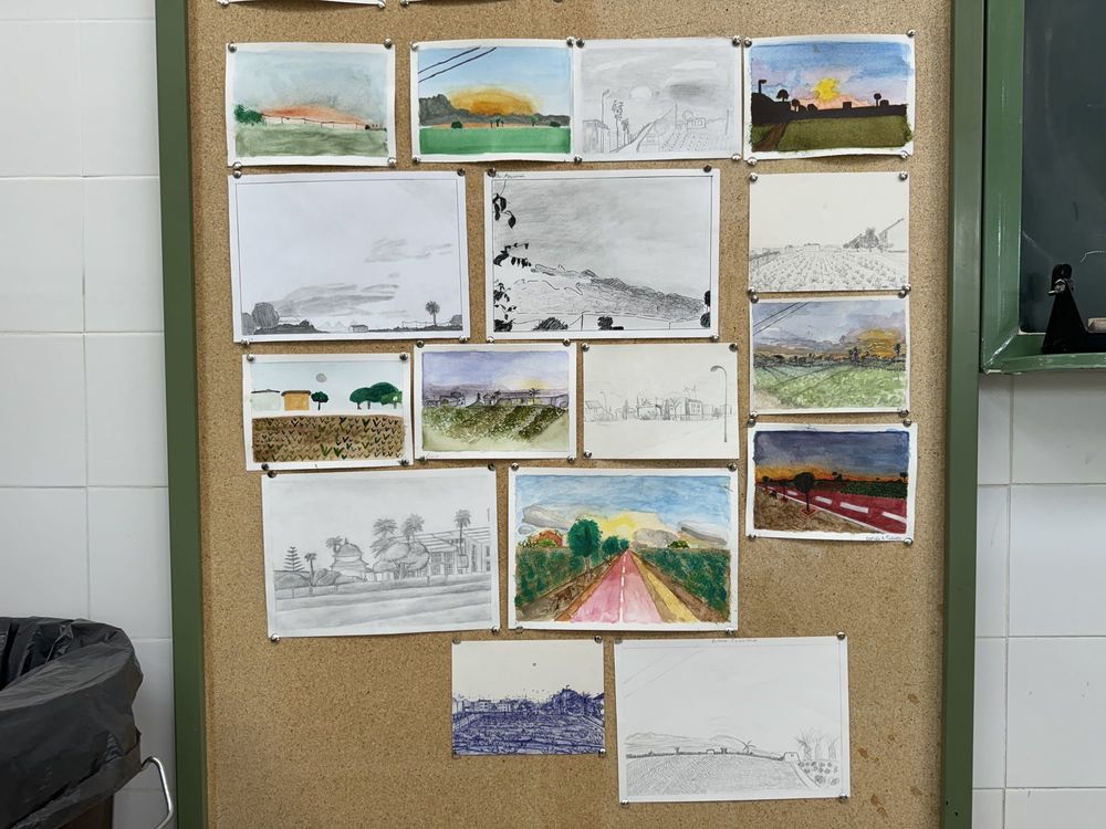 Primer vam eixir a explorar el lloc que més ens identifica a tots i a totes i que hi és més a prop de l'institut: la zona del poliesportiu, un lloc on ens agrada molt anar per les vesprades, i que és també molt propera a l'escola on hem anat la majoria de nosaltres. Allà hi ha moltes hortes i es veu una panoràmica molt bonica del poble. Ens vam documentar fent fotos i apunts del natural.