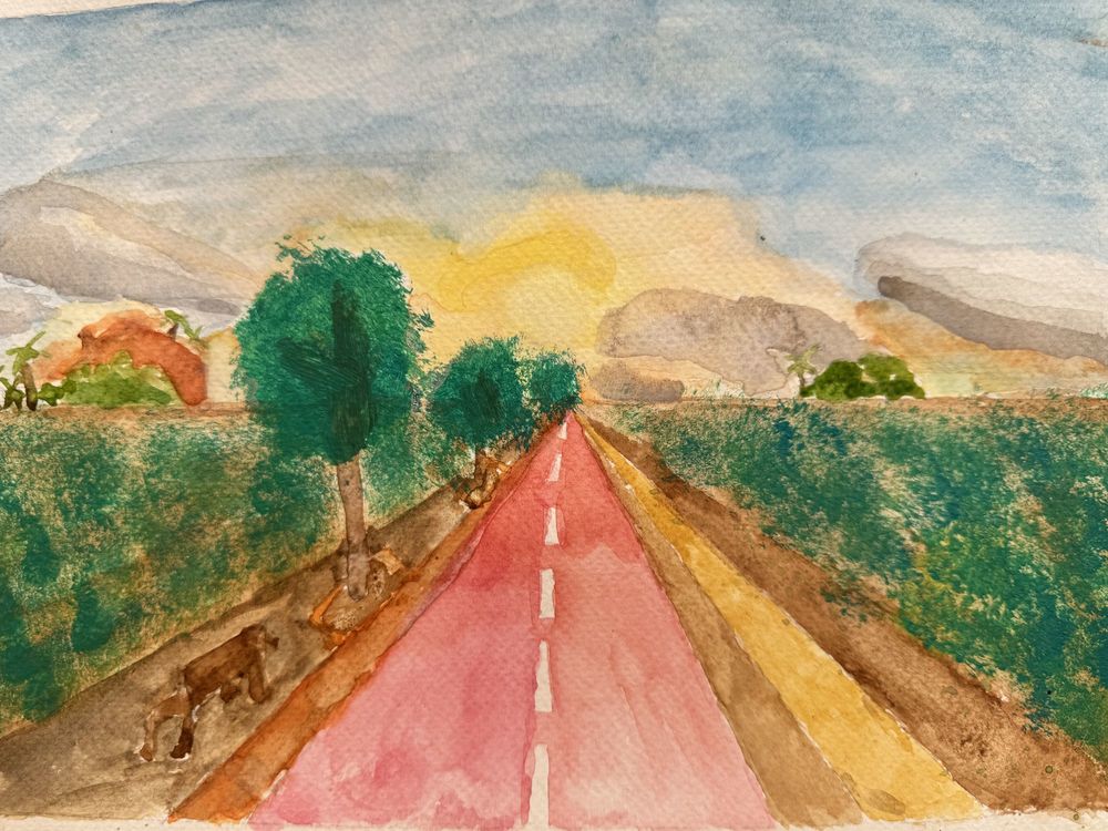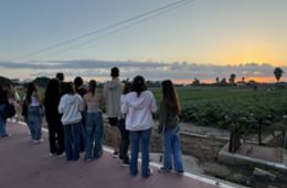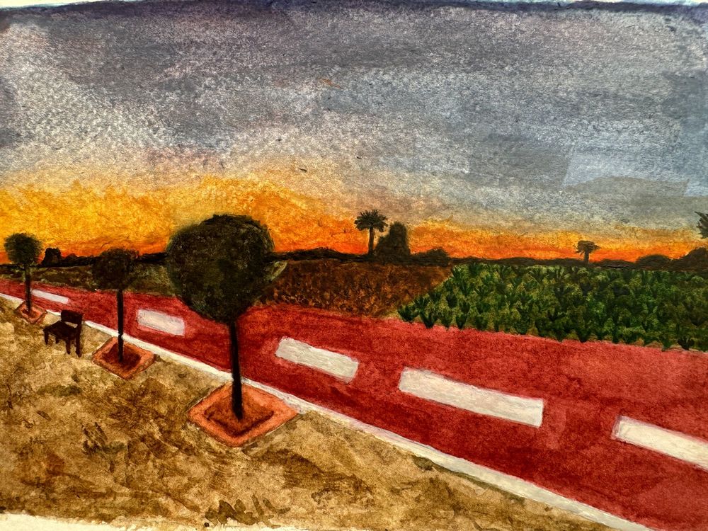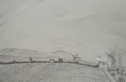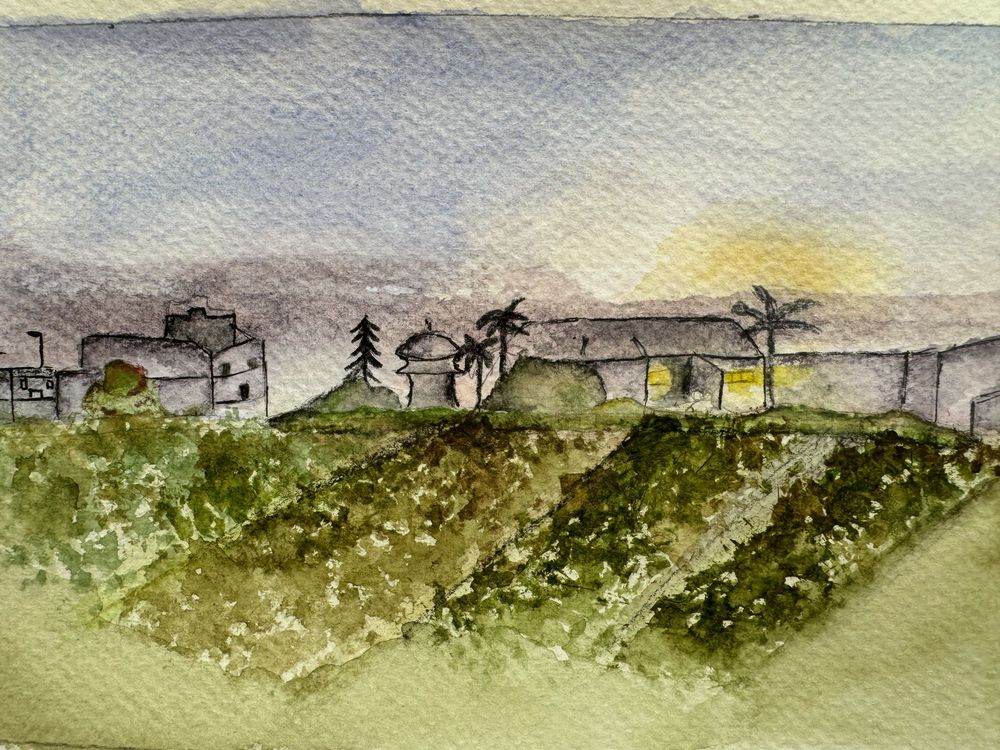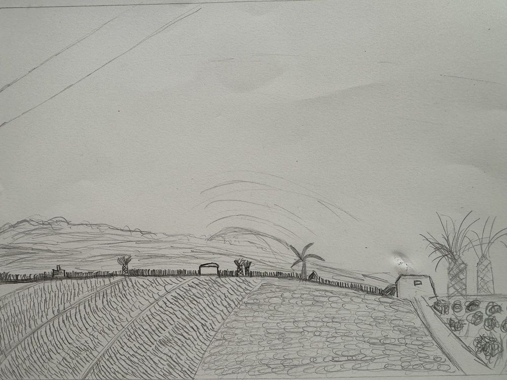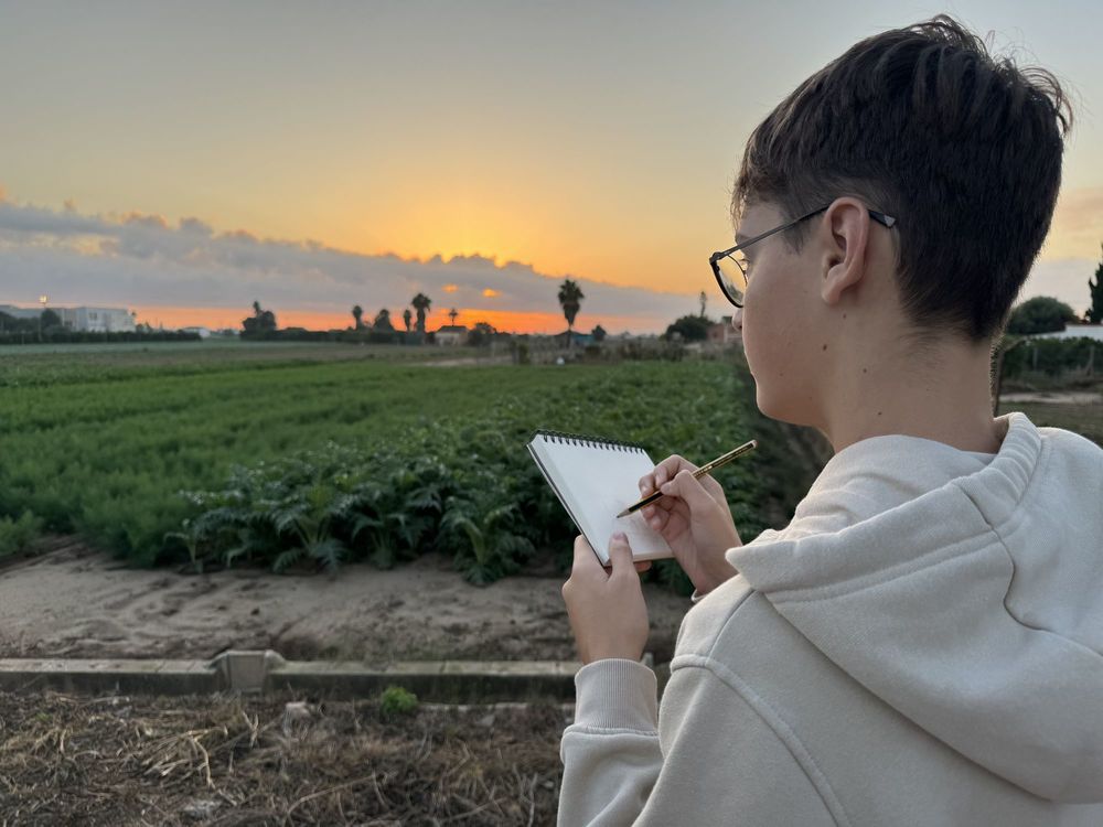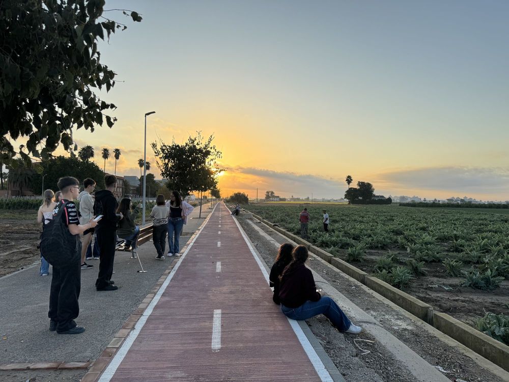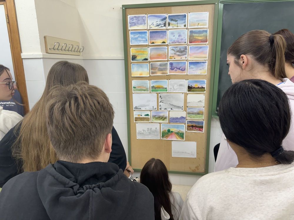 Primer vam eixir a explorar el lloc que més ens identifica a tots i a totes i que hi és més a prop de l'institut: la zona del poliesportiu, un lloc on ens agrada molt anar per les vesprades, i que és també molt propera a l'escola on hem anat la majoria de nosaltres. Allà hi ha moltes hortes i es veu una panoràmica molt bonica del poble. Ens vam documentar fent fotos i apunts del natural.