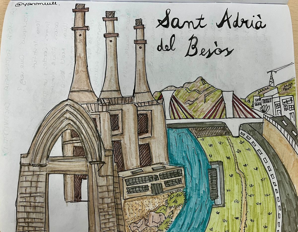 Per a portar a terme la tasca de representació de Sant Adrià, vam posar en comú a classe quins són els símbols del lloc on vivim. Van sortir algunes idees i vam procedir a dibuixar-ho. Gairebé tots vam representar en els nostres papers la mateixa idea però de diferents maneres.